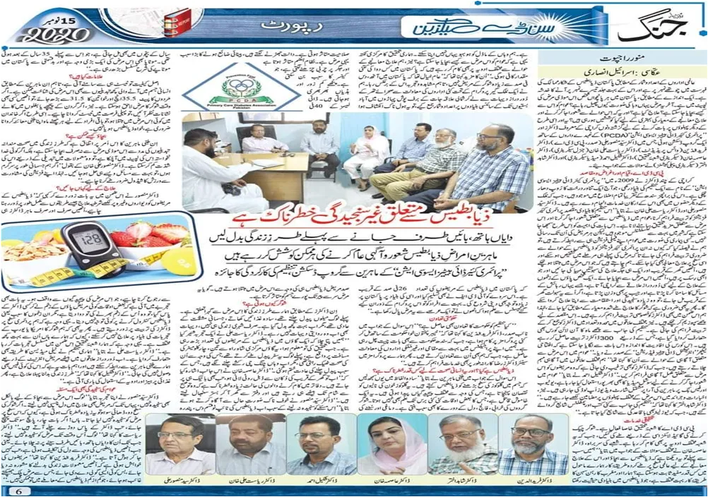 Article in Roznama Jung on World Diabetes Day